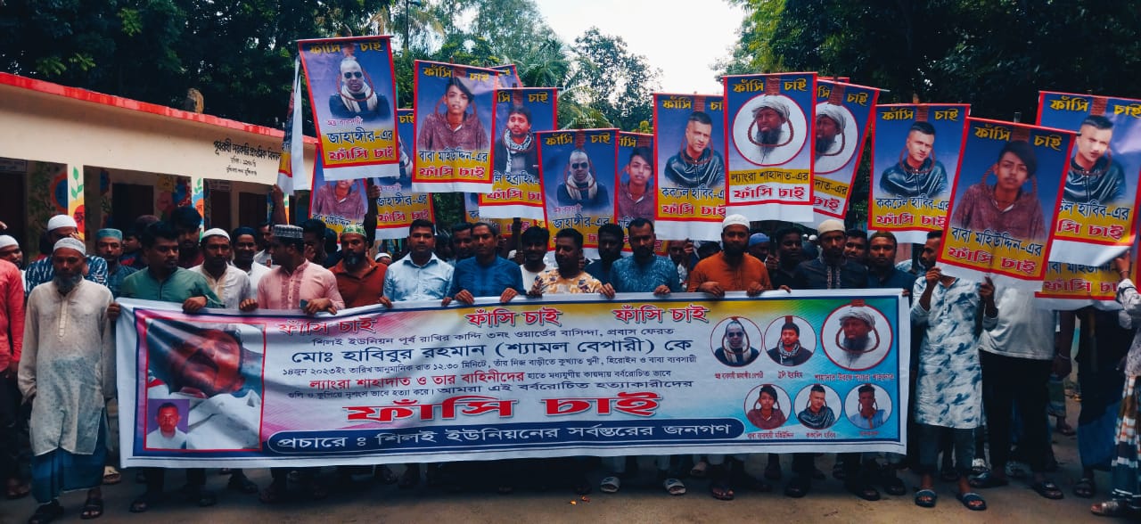 শ্যামল বেপারি হত্যাকান্ডে জড়িত সকল আসামিদের দ্রুত গ্রেফতার ও খুনিদের ফাঁসির দাবিতে এ বিক্ষোভ মিছিল করেন শিলই এলাকাবাসী।