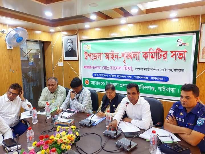 সাগর আহম্মেদ গাইবান্ধা প্রতিনিধি: গাইবান্ধার গোবিন্দগঞ্জে উপজেলা প্রশাসনের আয়োজনে আইনশৃঙ্খলা কমিটির মাসিক সাধারণ সভা অনুষ্ঠিত হয়েছে।উপজেলা নির্বাহী অফিসার ও আইন- শংঙ্খলা কমিটির সভাপতি রাসেল মিয়া’র সভাপতিত্বে সভায় প্রধান অতিথি হিসেবে বক্তব্য রাখেন আইন শৃংখলা কমিটির প্রধান উপদেষ্ঠা গাইবান্ধা-৪ গোবিন্দগঞ্জ আসনের জাতীয় সংসদ সদস্য আলহাজ্ব প্রকৌশলী বীর মুক্তিযোদ্ধা মনোয়ার হোসেন চৌধুরী,বিশেষ অতিথি হিসেবে বক্তব্য রাখেন উপজেলা পরিষদের চেয়ারম্যান ও উপজেলা আওয়ামী লীগের সভাপতি আব্দুল লতিফ প্রধান, ও উপজেলা আওয়ামী লীগের সাধারণ সম্পাদক মোকাদ্দেস আলী প্রধান বাদু ।(১৮ সেপ্টেম্বর) সোমবার দুপুরে গোবিন্দগঞ্জ উপজেলা পরিষদের কনফারেন্স রুমে অন্যান্যের মধ্যে বক্তব্য রাখেন থানার অফিসার ইনচার্জ শামসুল আলম শাহ, উপজেলা পরিষদের ভাইস চেয়ারম্যান শরিফুল ইসলাম তাজু, হাইওয়ে থানার অফিসার ইনচার্জ আমিনুল ইসলাম, সাবেক মুক্তি যোদ্ধা কমান্ডার বীরমুক্তিযোদ্ধা নুরুল ইসলাম আজাদ, সিনিয়র উপজেলা মৎস্য কমকর্তা এমরান হোসেন চৌধুরী, চেয়ারম্যান এসোসিয়েশনের সভাপতি ও কামদয়িা ইউপি চেয়ারম্যান মোশাহেদ হোসেন চৌধুরী বাবলু, সাধারণ সম্পাদক আবু রুশদ মোঃ শরিফুল ইসলাম জর্জ, গোবিন্দগঞ্জ মহিলা ডিগ্রী কলেজের অধ্যক্ষ আহসান হাবীব প্রিন্স, রাখালবুরুজ ইউনিয়ন পরিষদের চেয়ারম্যান হাসানুল হক চৌধুরী ডিউক,মহিমাগঞ্জ ইউপি চেয়ারম্যান আনোয়ারুল ইসলাম প্রমুখ।পরে জাতীয় সংসদ সদস্য দুুস্থ অচ্ছল মানুষের মাঝে সংসদ সদস্যের ঐচ্ছিক তহবিলের অর্থ বিতরণ করেন।
