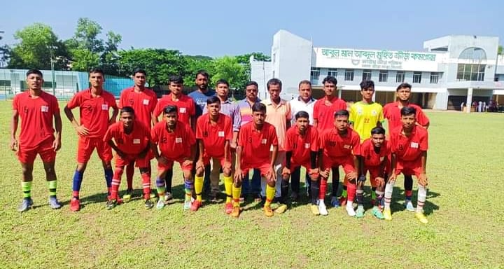 শাহাব উদ্দীন (রাফেল) নিজস্ব প্রতিনিধিঃ আমরা করবো জয়,আমরা করবো জয় নিশ্চয়ই আহা বুকের গভীরে আছে প্রত্যয় আমরা করবো জয় নিশ্চয় ভূপেন হাজারিকার গানের লাইন গুলোর মত জয়ের এক বুক আশা নিয়ে ইউনিয়ন পর্যায় থেকে শুরু করে জাতীয় পর্যায়ের ৫০তম গ্রীষ্মকালীন জাতীয় ক্রীড়া প্রতিযোগিতার ফুটবল বিভাগে অপরাজিত চ্যাম্পিয়ন হওয়ার গৌরব অর্জন করলো গাইবান্ধার গোবিন্দগঞ্জ উপজেলার মহিমাগঞ্জ উচ্চ বিদ্যালয়।আজ (শনিবার) সকাল ৯ টায় সিলেটের আবুল মাল আব্দুল মুহিত ক্রীড়া কমপ্লেক্সে ফাইনাল খেলা শুরু হয় উক্ত খেলায় চাপা অঞ্চলের চ্যাম্পিয়ন হয় মহিমাগঞ্জ উচ্চ বিদ্যালয়।মহিমাগঞ্জ উচ্চবিদ্যালয়ের প্রতিপক্ষ হিসাবে মাঠে নামেন গোলাপ অঞ্চলের চ্যাম্পিয়ন পটুয়াখালী সরকারি জুবলী উচ্চ বিদ্যালয়।পটুয়াখালী সরকারি জুবলী উচ্চ বিদ্যালয়কে ৩-০ গোলের ব্যবধানে পরাজিত করে মহিমাগঞ্জ উচ্চ বিদ্যালয়। ম্যাচে একটি করে গোল করে দুর্দান্ত ফর্মে থাকা লিমন, শাওন ও শাকিল।৫০তম গ্রীষ্মকালীন জাতীয় ক্রীড়া প্রতিযোগিতার ফুটবল বিভাগে জাতীয় পর্যায়ের খেলাগুলো অনুষ্ঠিত হয় লীগ ভিত্তিক। টানা দুই জয়ে ৬ পয়েন্ট নিয়ে টেবিলের শীর্ষে অবস্থান করে মহিমাগঞ্জ উচ্চ বিদ্যালয়।আজকের ফাইনাল খেলায় শুরু থেকেই প্রতিপক্ষ দলের উপর একের পর এক আক্রমণ চালায় মহিমাগঞ্জ উচ্চ বিদ্যালয়ের খেলোয়াড়েরা। ম্যাচের ৩৬ মিনিট সময়ে গৌরব কর্মকার লিমনের অসাধারণ গোলে প্রথমার্ধে ১-০ গোলের দেখা পায় মহিমাগঞ্জ উচ্চ বিদ্যালয়।ম্যাচের দ্বিতীয়ার্ধে স্ট্রাইকার শাওন দুর্দান্ত এক গোল করে। ম্যাচের ঠিক শেষ দিকে আর একটি গোল করে দলের জয় নিশ্চিত করে শাকিল। সেই সাথে ৫০তম গ্রীষ্মকালীন জাতীয় ক্রীড়া প্রতিযোগিতার ফুটবল বিভাগে জাতীয় চ্যাম্পিয়ন ঘোষিত হয়। মহিমাগঞ্জ উচ্চ বিদ্যালয়।মহিমাগঞ্জ উচ্চ বিদ্যালয়ের প্রধান শিক্ষক দীপক কুমার দেবনাথ বলেন এই অর্জন মহিমাগঞ্জ উচ্চ বিদ্যালয়ের এই জয় মহিমাগঞ্জ গাইবান্ধা বাসির।এ দিকে এই জয়ের কারনে স্থানীয়দের মাঝে চলছে আনন্দের ছড়াছড়ি।