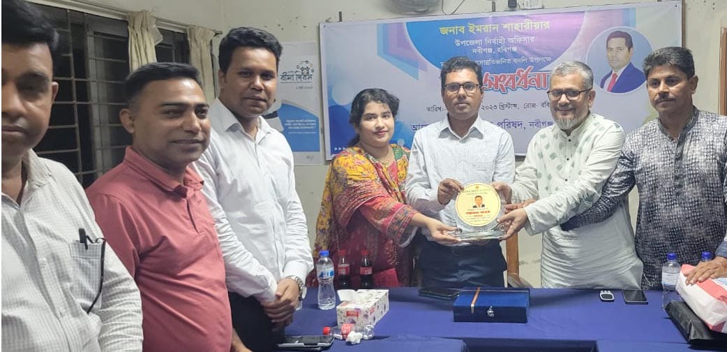 স্বপন রবি দাস, হবিগঞ্জ জেলা প্রতিনিধি: হবিগঞ্জের নবীগঞ্জ উপজেলার নির্বাহী অফিসার ইমরান শাহারীয়ার-কে পদোন্নতি জনিত বিদায় সংবর্ধনা দেওয়া হয়েছে। গতকাল রোববার দিনব্যাপী বিভিন্ন দপ্তর কর্তৃক পদোন্নতি জনিত বিদায় সংবর্ধনা দেওয়া হয়েছে। নবীগঞ্জ উপজেলা পরিষদ, ইউনিয়ন পরিষদ চেয়ারম্যান সমিতি ও উপজেলা সহকারী কমিশনার (ভূমি)’র কার্যালয়, উপজেলা নির্বাহী অফিসারের কার্যালয় এবং ভূমি অফিসের তহশীলদারগণ বিদায় সংবর্ধনা দেন। উপজেলা পজীপ কর্মকর্তা সাকিল আহমদ এর সঞ্চালনায় উপজেলা পরিষদ কর্তৃক সংবর্ধনা অনুষ্ঠানে প্রধান অতিথি হিসেবে বক্তব্য রাখেন- উপজেলা পরিষদ চেয়ারম্যান আলহাজ্ব ফজলুল হক চৌধুরী সেলিম। উপজেলা পরিষদের ভাইস চেয়ারম্যান এড. গতি গোবিন্দ্র দাশ, উপজেলা সহকারী কমিশনার (ভূমি) শাহীন দেলোয়ার, নবীগঞ্জ থানার নবাগত অফিসার ইনচার্জ মোঃ মাসুক আলী, উপজেলা নির্বাহী অফিসার মোঃ ইমরান শাহারীয়ার এর সহধর্মিনী ডাঃ তামান্না তানজিন পাফিন, উপজেলা শিক্ষা কর্মকর্তা কাজী সাইফুল ইসলাম, উপজেলা প্রকৌশলী মোঃ জুনায়েদ আলম, উপজেলা প্রকল্প বাস্তবায়ণ কর্মকর্তা মোঃ তাজ উদ্দিন, উপজেলা সিনিয়র মৎস্য কর্মকর্তা মোঃ আসাদ উল্লাহ, সহকারী প্রোগ্রামার কাজী মঈনুল হোসেন, জনস্বাস্থ্য উপ-সহকারী প্রকৌশলী মোহাম্মদ জাকারিয়া, সার্ভেয়ার মোঃ হাবিবুর রহমান, তহশীলদার মিথুন রঞ্জন তালুকদার, উপজেলা সহকারী কমিশনার (ভূমি)’র প্রধান সহকারী আশফাকুজ্জামান চৌধুরী, উপজেলা নির্বাহী অফিসার কার্যালয়ের প্রশাসনিক কর্মকর্তা মাহবুবুর রহমান, নাজির আব্দুল কাইয়ুম প্রমুখ।উল্লেখ্য, গত ১৮ সেপ্টেম্বর ২০২৩ইং উপ-সচিব ভাস্কর দেব নাথ বাপ্পি জন প্রশাসন মন্ত্রানালয়ের এক আদেশে তাকে নবীগঞ্জ উপজেলা নির্বাহী অফিসার ইমরান শাহারীয়ারকে চাঁদপুর জেলার অতিরিক্ত জেলা প্রশাসক হিসেবে পদোন্নতি দেওয়া হয়।