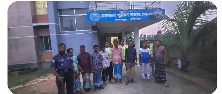 স্বপন রবি দাশ, হবিগঞ্জ জেলা প্রতিনিধি: হবিগঞ্জের মাধবপুর উপজেলার বহরা ইউনিয়নের গাংগাইল এলাকার একটি নার্সারীর টিনশেড ঘরে জুয়ার আসরে অভিযান চালিয়ে ০৮ জুয়াড়ীকে গ্রেফতার করেছে মাধবপুর থানা পুলিশ।গ্রেফতারকৃত জুয়াড়ীরা হলো উপজেলার বহরা ইউনিয়নের গাংগাইল গ্রামের মৃত আব্বাস আলীর ছেলে মোঃ কুদ্দুছ মিয়া (২৮) হরিশ্যামা গ্রামের আইয়ূব আলীর ছেলে সাদ্দাম হোসেন (২৫), আন্দিউড়া ইউনিয়নের কুটানিয়া গ্রামের মৃতঃনরেশ দাস এর ছেলে রমেশ দাস (৩৮), মৃতঃ ইয়াকুব আলীর ছেলে কদম আলী (৩৫), মৃত সুকুমল দাসের ছেলে স্বপন দাস (৩৫), মৃত কৃষ্ণ চরন সরকার এর ছেলে রবীন্দ্র সরকার (৪০),আলাদাউদপুর গ্রামের মৃতঃ হীরা মিয়ার ছেলে আউশ মিয়া (৩০),উত্তর গোবিন্দপুর গ্রামের মৃতঃ রফিজ উদ্দিনের ছেলে কামরুল ইসলাম (২৫)।পুলিশ ও স্থানীয় সূত্রে জানা গেছে, গ্রেফতারকৃতরা দীর্ঘদিন ধরে এলাকায় জুয়ার আসর বসিয়ে জুয়া খেলা চালিয়ে যাচ্ছিল। গোপন সংবাদের ভিত্তিতে বুধবার (৪’অক্টোবর) মনতলা পুলিশ তদন্ত কেন্দ্রের ইনচার্জ মোঃ মজিবুর রহমান চৌধুরী নেতৃত্বে এএসআই বাপ্পী রুদ্র পাল সঙ্গীয় ফোর্সদের নিয়ে এদিন দুপুর আড়াইটার দিকে গাংগাইল শাহীন মিয়ারনার্সারির ভিতর ১টি টিনশেড ঘরে অভিযান চালিয়ে জুয়া খেলার সরঞ্জামসহ তাদের গ্রেফতার করে। এ সময় তাদের কাছ থেকে জুয়া খেলার সরঞ্জাম ও ১৮হাজার ১শত৭০ টাকাসহ উদ্ধার করা হয়। গ্রেফতারকৃত আসামিদের আগামীকাল হবিগঞ্জ বিজ্ঞ আদালতে প্রেরণ করা হবে।গ্রেফতার বিষয়টি নিশ্চিত করেন মাধবপুর থানার অফিসার ইনচার্জ (ওসি) রকিবুল ইসলাম খান।