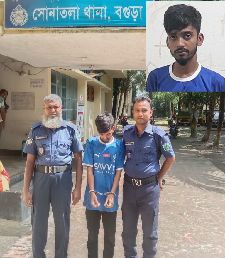 সাগর আহম্মেদ নিজস্ব প্রতিনিধিঃ বগুড়ার সোনাতলায় ১৫ পিছ ইয়াবাসহ মাদক ব্যবসায়ী আবু তাহের নামের এক যুবক কে গ্রেফতার করেছে থানা পুলিশ। আবু তাহের উপজেলার বালুয়া ইউনিয়নের মহিষাবাড়ি গ্রামের আলোচিত মাদক ব্যবসায়ী রবিউল ইসলাম ওরফে ওবে’র ছেলে।জানা গেছে, ৭ অক্টোবর শনিবার দিবাগত রাতে গোপন সংবাদের ভিত্তিতে থানার অফিসার ইনচার্জ সৈকত হাসানের নেতৃত্বে এসআই নুর ইসলাম সঙ্গীয় ফোর্সসহ উপজেলার বালুয়া ইউনিয়নের মহিষাবাড়ি গ্রামে অভিযান পরিচালনা করেন।উক্ত গ্রামের আলোচিত মাদক ব্যবসায়ী রবিউল ইসলাম ওরফে ওবে’র ছেলে আবু তাহের নামক এক যুবককে গ্রেফতার করে। এসময় গ্রেফতারকৃত আসামি আবু তাহের এর কাছ থেকে ১৫ পিছ ইয়াবা ট্যাবলেট উদ্ধার করেছে পুলিশ।