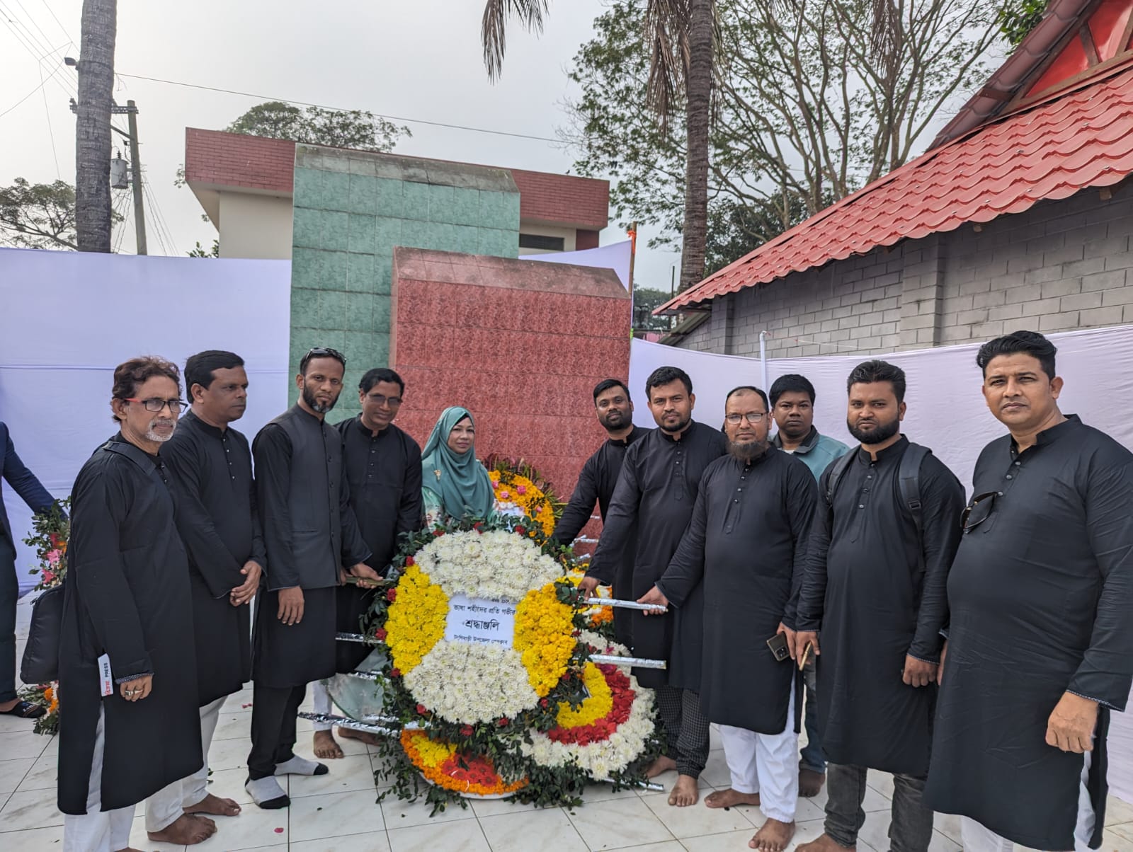 টঙ্গীবাড়ী প্রতিনিধি: মহান শহীদ দিবস ও আন্তর্জাতিক মাতৃভাষা দিবস উপলক্ষে পুষ্পস্তবক অর্পণের মধ্য দিয়ে ভাষা শহীদদের প্রতি শ্রদ্ধা নিবেদন করেছে টঙ্গীবাড়ী উপজেলা প্রেসক্লাব। বুধবার (২১ফেব্রুয়ারি) সকাল ৮:০০ টায় উপজেলা শহীদ মিনারে পুষ্পস্তবক অর্পণ করে সংগঠনটি।