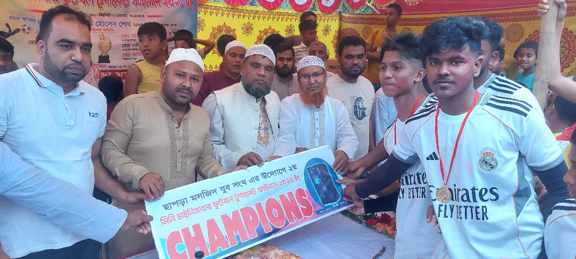 টঙ্গিবাড়ী (মুন্সীগঞ্জ) প্রতিনিধি:   মুন্সীগঞ্জের টঙ্গিবাড়ী উপজেলার আব্দুল্লাহপুর ইউনিয়নের পাইক পাড়া ছাপরা মসজিদ যুব সংঘের উদ্যোগে চাইনিজ বার ফুটবল টুর্নামেন্ট ফাইনাল খেলা অনুষ্ঠিত হয়েছে। শুক্রবার বিকাল ৪ টায় দক্ষিণ পাইকপাড়া একটি মাঠে খেলাটি অনুষ্ঠিত হয়। এতে অংশগ্রহণ করেন পাইকপাড়া জুনিয়র স্টার বনাম পাইকপাড়া বন্ধু মহল। পাইকপাড়া বন্ধুমহলকে ৫-১ গোলে হারিয়ে পাইক পাড়া জুনিয়র স্টার জয় লাভ করেন। এ সময় প্রধান অতিথি হিসেবে উপস্থিত ছিলেন টঙ্গিবাড়ী প্রেসক্লাবের সভাপতি মোজাফফর হোসেন শেখ,আব্দুল্লাহপুর ৯নং ওয়ার্ড ইউপি সদস্য মোশারফ হোসেন মাদবরের সভাপতিত্বে এ সময় আরো উপস্থিত ছিলেন আব্দুল বারেক বেপারী,মনির হোসেন শেখ,তোফাজ্জল বেপারী,আনোয়ার হোসেন, মোঃ সোহেল শেখ, মাহাবুব দেওয়ান,বাদল শেখ প্রমুখ। খেলাটিতে চ্যাম্পিয়ন ট্রফি হিসেবে একটি ফ্রিজ ও রানার্সআপ ট্রফি হিসাবে একটি স্মার্ট টেলিভিশন প্রদান করা হয়।