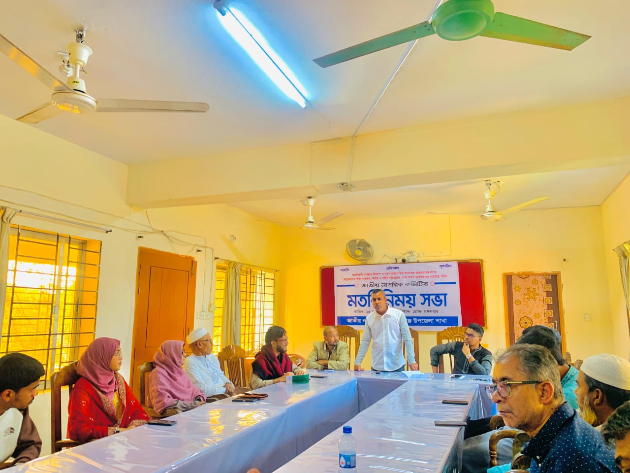 অনুষ্ঠিত মতবিনিময় সভায় প্রধান অতিথি হিসেবে উপস্থিত ছিলেন জাতীয় নাগরিক কমিটি হবিগঞ্জ জেলা সংগঠক পলাশ মাহমুদ। আয়োজিত মতবিনিময় সভায় নবীগঞ্জ উপজেলা জাতীয় নাগরিক কমিটির প্রতিনিধি সাজিদুর রহমান, দিলারা হোসাইন, রায়হান মিয়া, গিয়াস উদ্দিন, এনামুল হক, আনোয়ার হোসেন, মহিউদ্দিন অপু, আব্দুল মুকিত, দেওয়ান রাফি চৌধুরী, আলাউর রাহমান বামসি, রুহাম গাজী, শামীম আহমেদ, মিজানুর রহমান, এডভোকেট মনির হোসেন, মাহি চৌধুরী, সাজ্জাদুর রহমান, ইকবাল হোসেন, নাইমুর রহমান, ফয়েজ আহমদ, মাহিন আহমদ সাগর প্রমূখ। সভায় ২৮ ফেব্রুয়ারী জাতীয় নাগরিক কমিটি আনুষ্ঠানিকভাবে আত্মপ্রকাশ নিয়ে নিজেদের মধ্যে সাংগঠনিক কার্যক্রম প্রসঙ্গে দীর্ঘ আলোচনা করেন। সভায় বক্তাগণ বলেন জুলাই আগষ্টের বিপ্লবের চেতনাকে ধারণ করে নতুন বিনির্মাণ বাংলাদেশ গঠনে তারুণ্যের শক্তিকে কাজে লাগিয়ে নতুন পথচলায় দৃঢ় প্রত্যয় ব্যক্ত করেন নেতৃবৃন্দ।