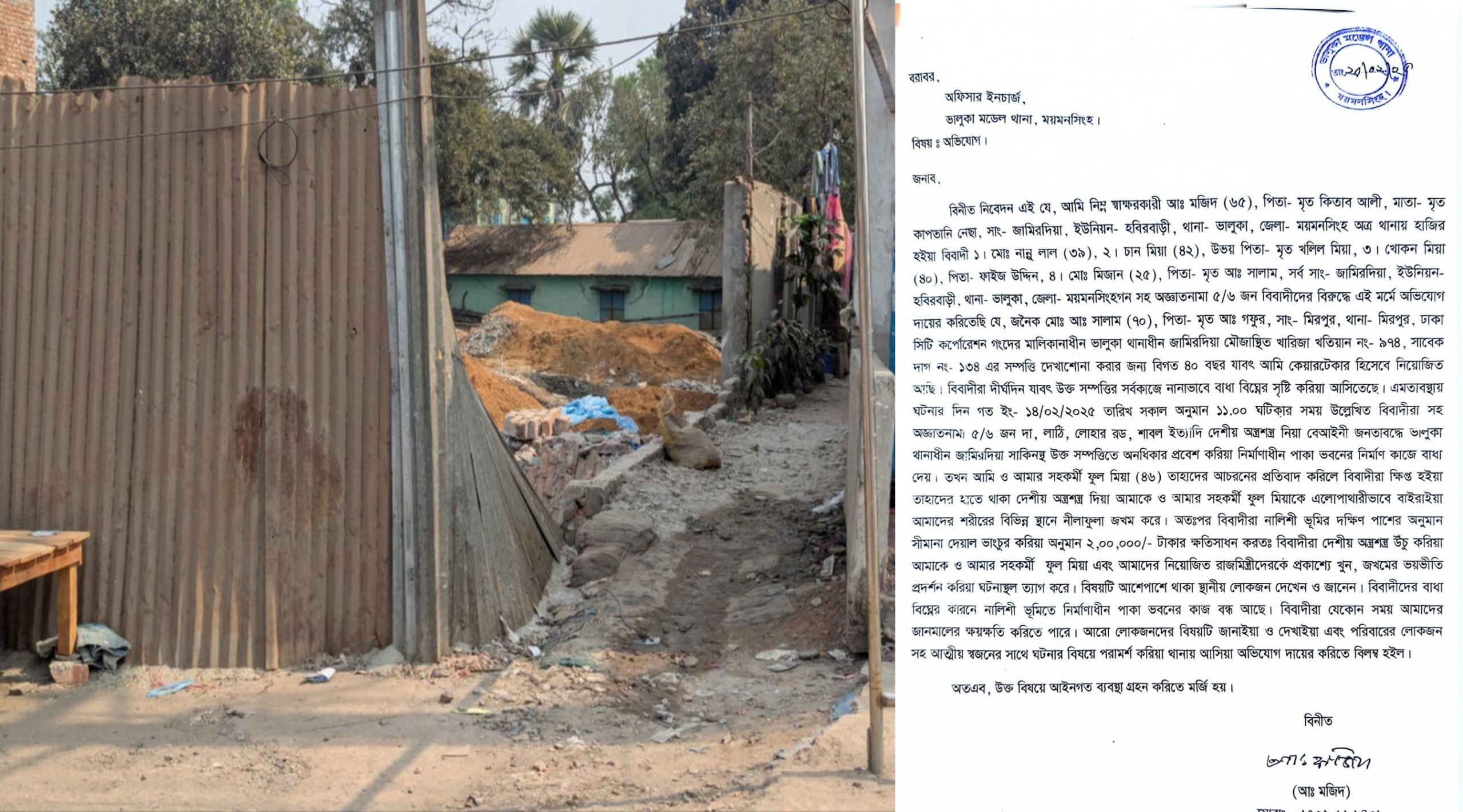 ভালুকা (ময়মনসিংহ) প্রতিনিধি: ময়মনসিংহ ভালুকায় নিজস্ব সম্পত্তিতে ভবন নির্মাণ কাজে বাধা দেওয়ার ঘটনা ঘটেছে। ওই ঘটনায় জমির কেয়ারটেকার আঃ মজিদ বাদী হয়ে ৪ জনের নাম উল্লেখ করে ভালুকা মডেল থানায় অভিযোগ করেছেন। এছাড়াও ওই অভিযোগে ৫-৬ জনকে অজ্ঞাত আসামি করা হয়।অভিযোগ সূত্রে জানা যায়, ঢাকার মিরপুর এলাকার মোঃ আঃ সালাম ভালুকা উপজেলার জামিরদিয়া এলাকায় বছর আগে ৯৭৪ নং খতিয়ানের ১৩৪ নং সাবেক দাগে জমি ক্রয় করে মার্কেট, মসজিদ করেন। সম্প্রতি মসজিদের পাশের জায়গায় একটি ভবন নির্মাণ কাজ শুরু করেন। গত ১৪ ফেব্রুয়ারি (শুক্রবার) ওই এলাকার মৃত খলিল মিয়ার ছেলে মোঃ নান্নু লাল (৩৯), চান মিয়া (৪২), ফাইজ উদ্দিনের ছেলে খোকন মিয়া (৪০), মৃত আঃ সালামের ছেলে মোঃ মিজান (২৫) সহ অজ্ঞাত আরো ৫-৬ জন এসে বাধা দেয়। এর আগেও তারা বিভিন্ন সময় এসে কাজে বাধা দিতেন। ওইদিন আনুমানিক সকাল ১১ টার দিকে অভিযুক্তরা দা, লাঠি, লোহার রড, শাবল সহ দেশীয় অস্ত্রশস্ত্র নিয়ে নির্মাণাধীন পাকা ভবনের নির্মাণ কাজে বাধা দেয়। তখন কেয়ারটেকার আঃ মজিদ (৬৫) ও ফুল মিয়া (৪৬) প্রতিবাদ করলে বিবাদীরা ক্ষিপ্ত হয়ে তাদের হাতে থাকা দেশীয় অস্ত্রশস্ত্র দিয়ে এলোপাথারীভাবে আঘাত করে শরীরের বিভিন্ন স্থানে নীলাফুলা জখম করে। পরে নালিশী ভূমির দক্ষিণ পাশের সীমানা প্রাচীর ভাংচুর করে। ফলে আনুমানিক ২,০০,০০০ (দুই লক্ষ) টাকার ক্ষতিসাধন হয়। পরে বিবাদীরা দেশীয় অস্ত্রশস্ত্র উঁচু করে আঃ মজিদ ও ফুল মিয়া সহ নির্মাণ কাজে নিয়োজিত রাজমিস্ত্রীদেরকে প্রকাশ্যে খুন, জখমের ভয়ভীতি দেখায় পরে ঘটনাস্থল থেকে চলে যায়।জমির মালিক সালাম জানান, আমি দীর্ঘদিন আগে জায়গা কিনেছি। এখন নান্নু আমার কেয়ারটেকারদের বিভিন্ন হুমকি দিচ্ছে। আমার কাজ বন্ধ হয়ে আছে। আমি ক্ষতির সম্মুখীন হচ্ছি। আমি সুষ্ঠু বিচার চাই।এবিষয়ে অভিযুক্ত নান্নু বলেন, আমি ওয়াল ভাঙি নাই। তারা কাজের জন্য যে গর্ত করছে গর্তের জন্য ভেঙে গেছে। আর আমি কাউকে হুমকিও দেয়নি। পুলিশের সামনেই কেয়ারটেকারকে অভিযোগের বিষয়ে জিজ্ঞেস করেছি।ভালুকা মডেল থানার ওসি শামসুল হুদা খান জানান, অভিযোগ পেয়েছি। তদন্ত সাপেক্ষে প্রয়োজনীয় ব্যবস্থা গ্রহণ করা হবে।