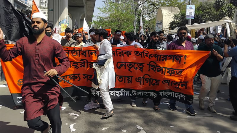 জানা যায়, তুরস্কে খিলাফত পতনের ১০১ বছরের প্রেক্ষাপটে এই কর্মসূচি ডাক দিয়েছে সংগঠনটি। জুমার নামাজ শেষ হওয়ার সঙ্গে সঙ্গেই বায়তুল মোকাররমের উত্তর গেটের সামনের রাস্তায় জড়ো হয় হিজবুত তাহরীরের কয়েক হাজার সমর্থক। ‘মুক্তির একপথ, খিলাফত খিলাফত’ এই স্লোগান দিয়ে তারা মার্চ শুরু করেন।