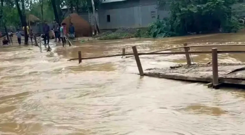 তিনি বলেন, ২৪ ঘণ্টার মধ্যে ময়মনসিংহ বিভাগের শেরপুর ও নেত্রকোনা এবং সিলেট বিভাগের সুনামগঞ্জ ও সিলেটের বিভিন্ন নদীতে পাহাড়ি ঢল শুরুর আশঙ্কা রয়েছে।তিনি আরও বলেন, মঙ্গলবার থেকে বুধবার দুপুর ১২টার মধ্যে রংপুর, ময়মনিসংহ ও সিলেট বিভাগের জেলাগুলোর ওপর দিয়ে একনাগাড়ে মাঝারি থেকে ভারী মানের বৃষ্টিপাত অতিক্রমের প্রবল আশঙ্কা করা যাচ্ছে।শেরপুর পানি উন্নয়ন বোর্ডের (পাউবো) তথ্য অনুযায়ী, মঙ্গলবার সকাল ১০টায় চেল্লাখালী নদীর পানি বিপৎসীমার ১০৬ সেন্টিমিটার ওপর দিয়ে প্রবাহিত হচ্ছে। গত রাত ১০টায় পর্যন্ত ছিল ৩৯ সেন্টিমিটারের ওপর।মঙ্গলবার ভোর থেকে মুষলধারে বৃষ্টি এবং উজানে অতিরিক্ত বর্ষণের কারণে আবারও পানি বেড়েছে বলে জানিয়েছে পাউবো।