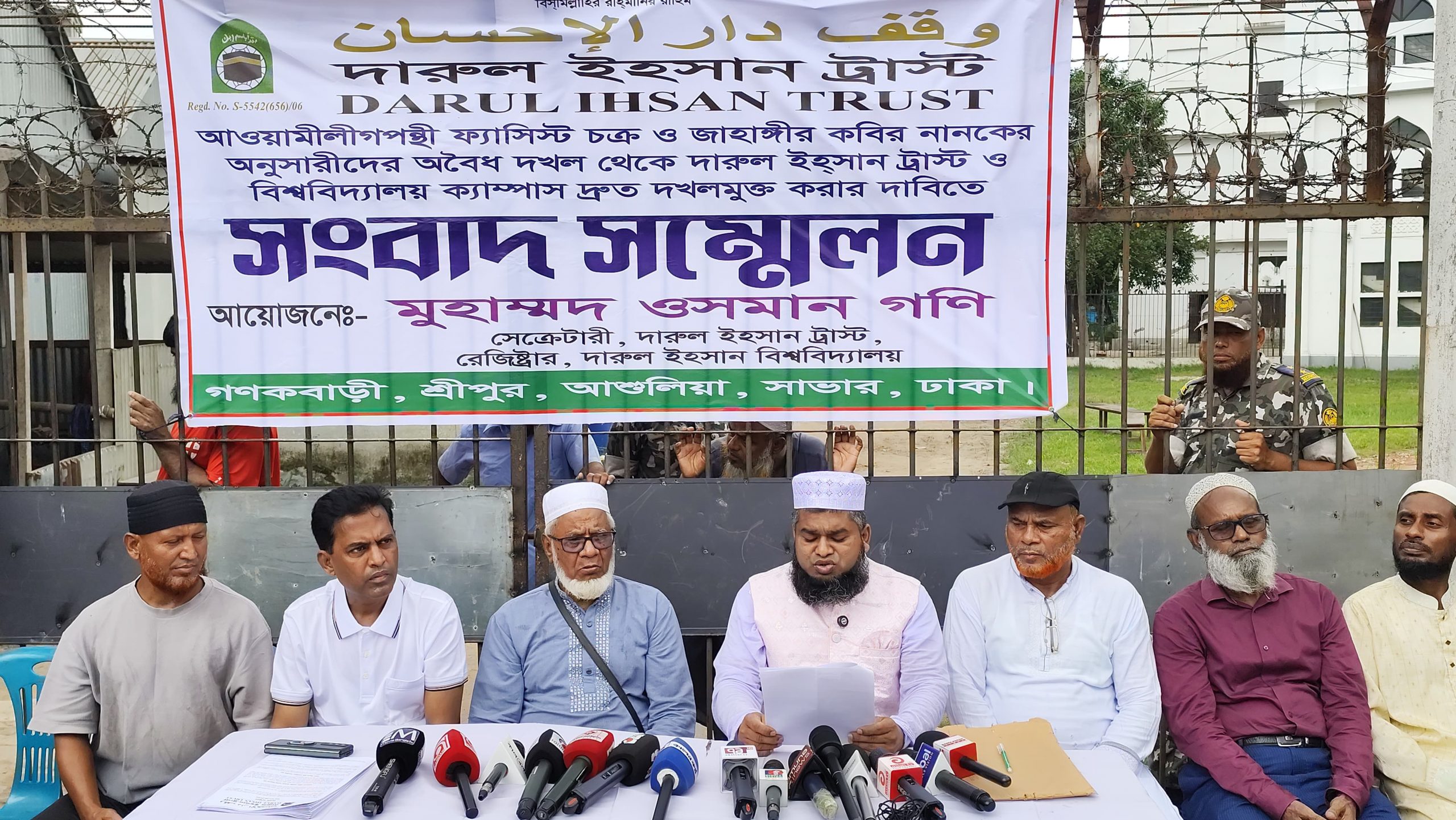 এসময় আওয়ামীপন্থী জাহাঙ্গীর কবির নানকের অনুসারীদের অবৈধ দখল থেকে এই ট্রাস্ট ও বিশ্ববিদ্যালয়ের ক্যাম্পাস দ্রুত দখলমুক্ত করে বৈধ কমিটির কাছে হস্তান্তর এর জন্য প্রশাসনের সহযোগিতা কামনা করেন।এসময়ে সংবাদ সম্মেলনে উপস্থিত ছিলেন, দারুল ইহসান ট্রাষ্ট এর সেক্রেটারী মুহাম্মদ ওসমান গণী এবং সাভার-আশুলিয়ার বিভিন্ন প্রিন্ট ও ইলেকট্রনিক মিডিয়ার গণমাধ্যম কর্মীরা সহ আরও অনেকে।