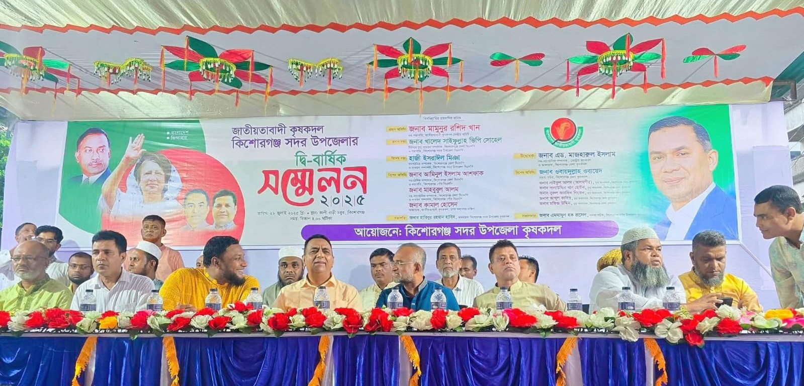 তীব্র বৃষ্টি উপেক্ষা করে কিশোরগঞ্জ সদর উপজেলা কৃষক দলের দ্বি-বার্ষিক সম্মেলন অনুষ্ঠিত