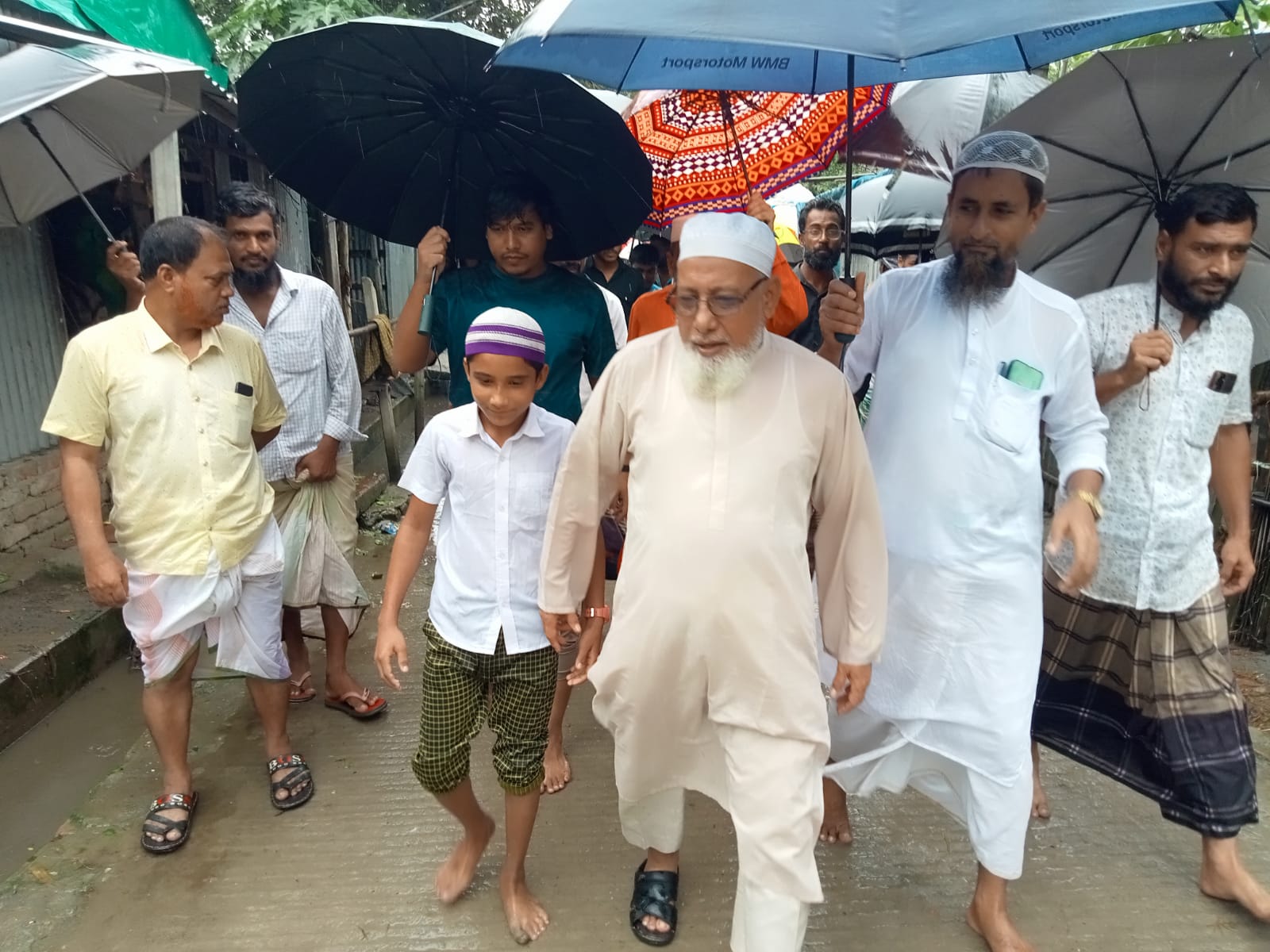 বৃষ্টি উপেক্ষা করে অধ্যাপক রমজান আলীর নির্বাচনী প্রচারণা