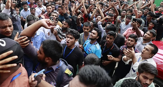 পরিদর্শন শেষে ভবন-৫ এ আসার পথে আসিফ নজরুলের পথরোধ করার চেষ্টা করেন শিক্ষার্থীরা।ভবন-৫ এ পৌঁছানোর পর সেখানে যান শিক্ষা উপদেষ্টা। সেখানে দীর্ঘক্ষণ ছিলেন দুই উপদেষ্টা। বাইরে ক্ষতিপূরণসহ নানা দাবিতে বিক্ষোভ করছিল শিক্ষার্থীরা।দুপুর সাড়ে ১২টার দিকে পুলিশি পাহারায় ভবন-৫ এর সামনে হ্যান্ড মাইকে কথা বলেন আসিফ নজরুল।