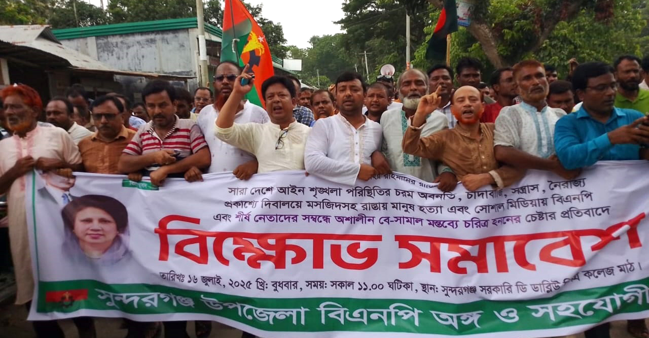 সুন্দরগঞ্জ প্রতিনিধি: সারা দেশে আইন শৃঙ্খলা পরিস্থিতির চরম অবনতি, চাঁদাবাজি, সন্ত্রাস, নৈরাজ্য,প্রকাশ্যে দিবালয়ে মসজিদসহ রাস্তায় মানুষ হত্যা এবং সোশাল মিডিয়ায় বিএনপি এবং শীর্ষ নেতাদের সম্বন্ধে অশালীন বে-সামাল মন্তব্যে চরিত্র হননের চেষ্টার প্রতিবাদে