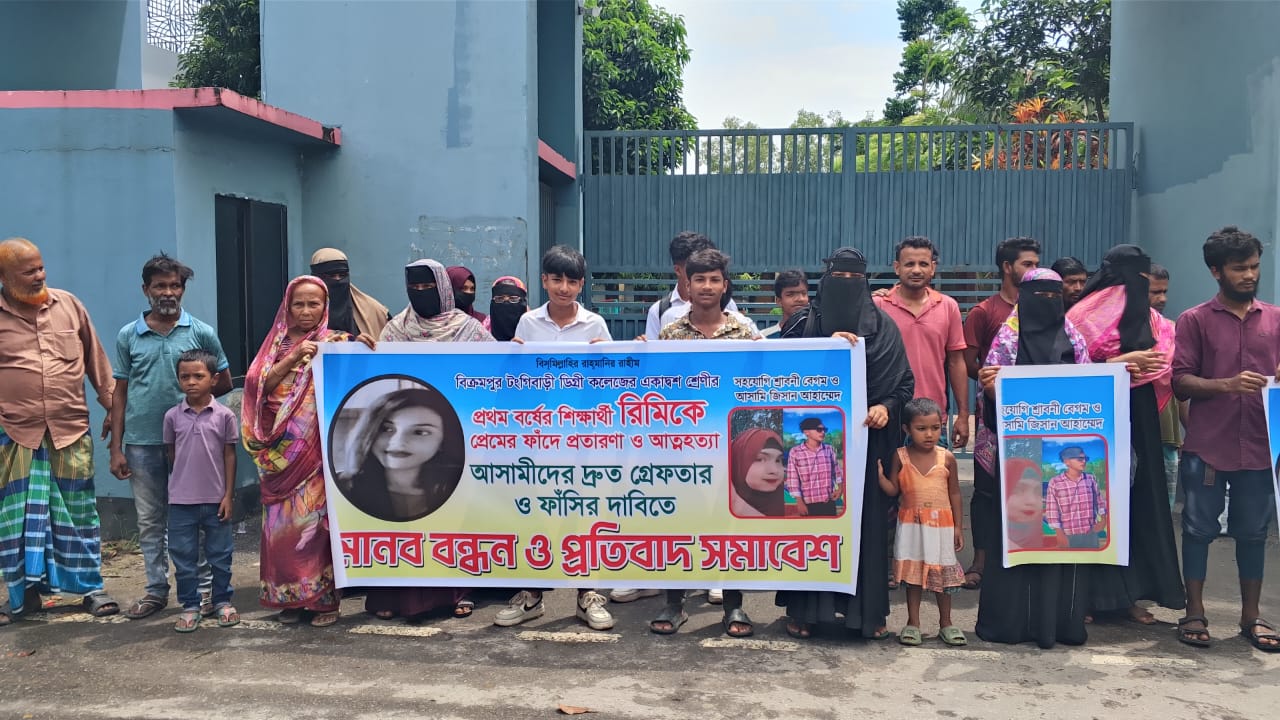 মানববন্ধনকারীরা বলেন, প্রেমের নাম করে এমন প্রতারণা ও নৃশংসতার বিরুদ্ধে কঠোর ব্যবস্থা নেওয়া জরুরি। তারা হুঁশিয়ারি দেন—দোষীদের ফাঁসি না হওয়া পর্যন্ত আন্দোলন চলবে। একই সঙ্গে সমাজে সচেতনতা বৃদ্ধির আহ্বান জানানো হয়।নিহত রিমির মা সাংবাদিকদের কান্নাজড়িত কণ্ঠে বলেন, “প্রায় ১৬ মাস ধরে থানায়-আদালতে ছোটাছুটি করছি, কিন্তু আমরা কোনো বিচার পাচ্ছি না। মামলা দিয়ে আমি নিঃস্ব হয়ে যাচ্ছি।”টঙ্গিবাড়ী থানার ভারপ্রাপ্ত কর্মকর্তা (ওসি) মো. মহিদুল ইসলাম মোবাইল ফোনে জানান, বক্তব্য দরকার নাই, বক্তব্য নিলে আমার কাছে আসবেন।