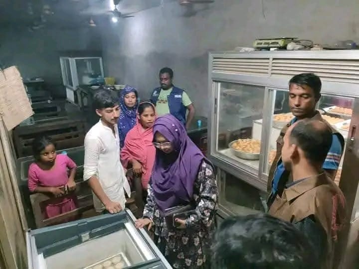 ৪। দই ও মিষ্টির তাকের নিচে ময়লাযুক্ত জিনিসপত্র রাখা সহ নানা অভিযোগের ভিত্তিতে এই জরিমানা করা হয়।