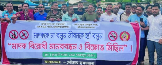 বক্তারা বলেন, মাদক বর্তমান সমাজের জন্য এক ভয়াবহ অভিশাপে পরিণত হয়েছে। এটি শুধু ব্যক্তিকেই ধ্বংস করছে না, বরং পরিবার ও সমাজকে নিঃশেষ করে দিচ্ছে। তাঁরা আরও বলেন, মাদক নির্মূলে সমাজের সব শ্রেণির মানুষকে ঐক্যবদ্ধভাবে এগিয়ে আসতে হবে। শুধুমাত্র প্রশাসনের উদ্যোগই যথেষ্ট নয়; মাদক প্রতিরোধে প্রয়োজন ব্যাপক জনসচেতনতা ও সামাজিক আন্দোলন। বক্তারা মনে করেন, যুব সমাজকে মাদকের ছোবল থেকে বাঁচাতে হলে পরিবার থেকেই সচেতনতা শুরু করতে হবে। পাশাপাশি স্থানীয় জনসাধারণ ও প্রশাসনের সমন্বিত উদ্যোগই একটি মাদকমুক্ত সমাজ গঠনে কার্যকর ভূমিকা রাখতে পারে। মানববন্ধন ও বিক্ষোভে এলাকার বিভিন্ন শ্রেণিপেশার মানুষ স্বতঃস্ফূর্তভাবে অংশগ্রহণ করেন।