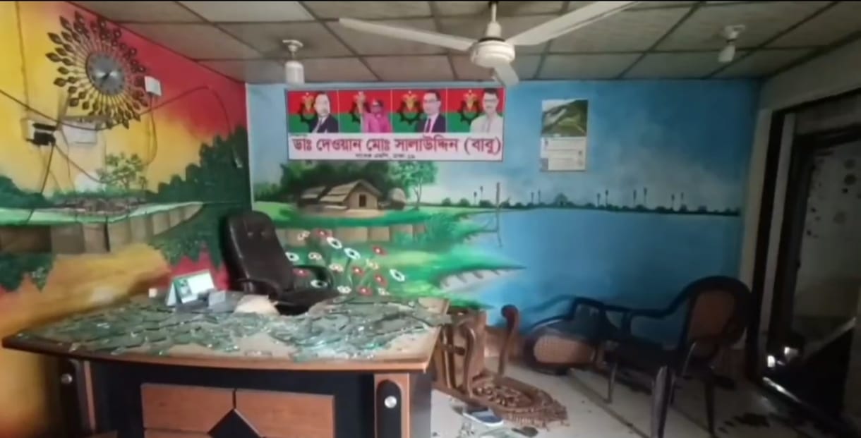 আশুলিয়ায় মাদকের বিরুদ্ধে প্রতিবাদ করায় পুলিশের সামনেই যুবদলের অফিসে হামলা ও ভাংচুর; আহত-২