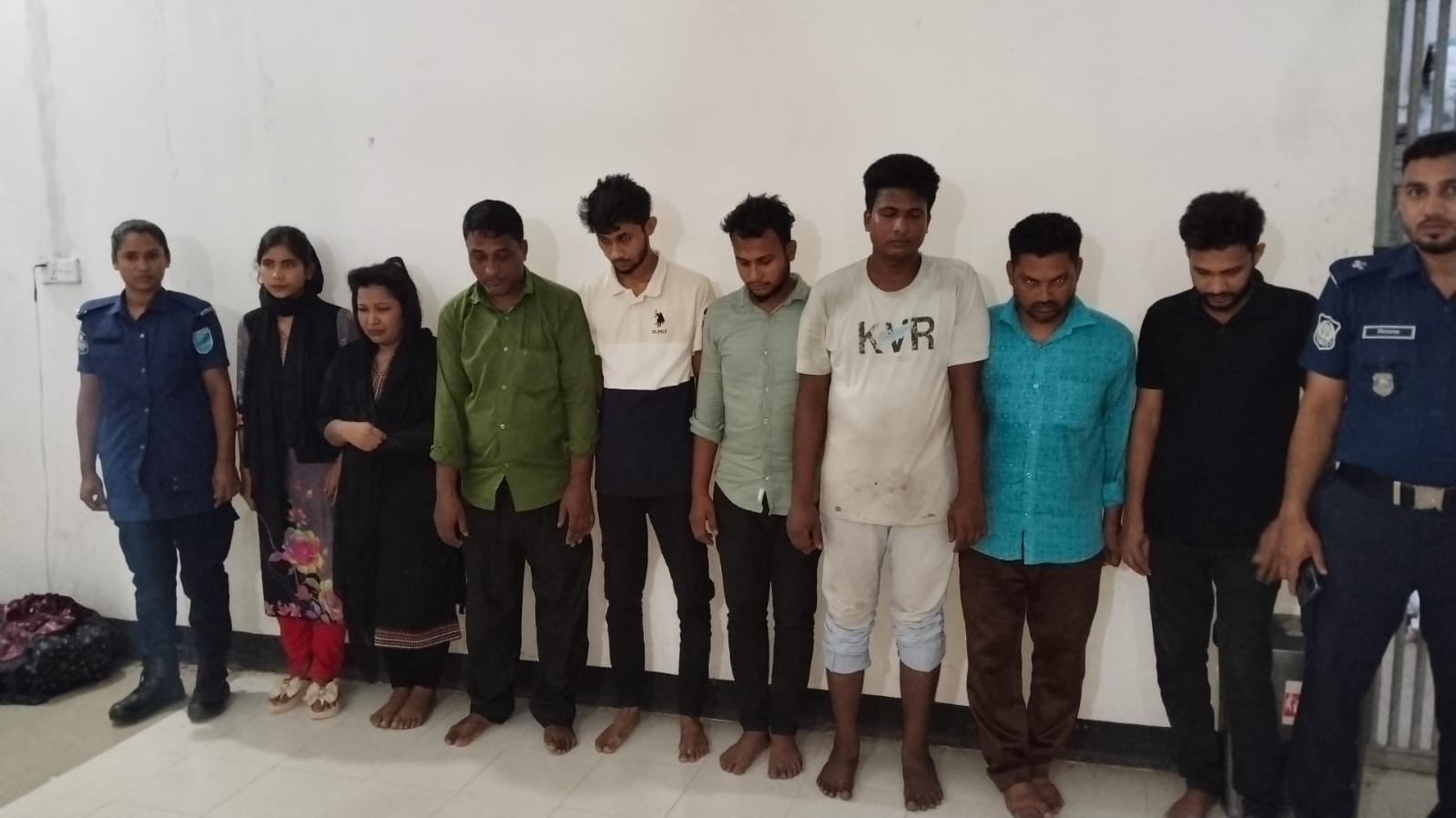 গ্রেপ্তারকৃতরা হলেন, সিলেটের আক্কাছ মিয়া ওরফে আলম (৪৮), পটুয়াখালির মেহেদী হাসান অভি (২৫), গাজীপুরের নাজমুল হাসান জিসান (২৪), মানিকগঞ্জের আবুল হোসেন (৪১), ঢাকার ধামরাইয়ের সুমন (২৫) ও জুলহাস (৩০), পঞ্চগড়ের রাজমনি (১৯) এবং দিনাজপুরের সুমি আক্তার (২২)। তাদের মধ্যে দু’জন গেস্ট হাউজের স্টাফ রয়েছে বলে জানা গেছে।