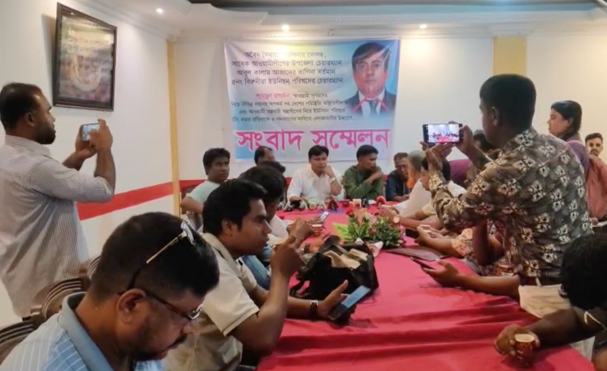 সংবাদ সম্মেলনে লিখিত বক্তব্যে তিনি জানান, সম্প্রতি শামছুল হোসাইনের নেতৃত্বে আওয়ামী লীগ, যুবলীগ ও ছাত্রলীগের ক্যাডাররা ইউনিয়ন পরিষদ ভবনের ভেতরে সভা করেছে। দেশের অস্থিতিশীল পরিস্থিতি সৃষ্টির উদ্দেশ্যে অনুষ্ঠিত ওই সভার প্রতিবাদ জানিয়ে তিনি বলেন, চেয়ারম্যান পদে বহাল থেকে তিনি আওয়ামী রাজনীতির পৃষ্ঠপোষকতা করছেন।