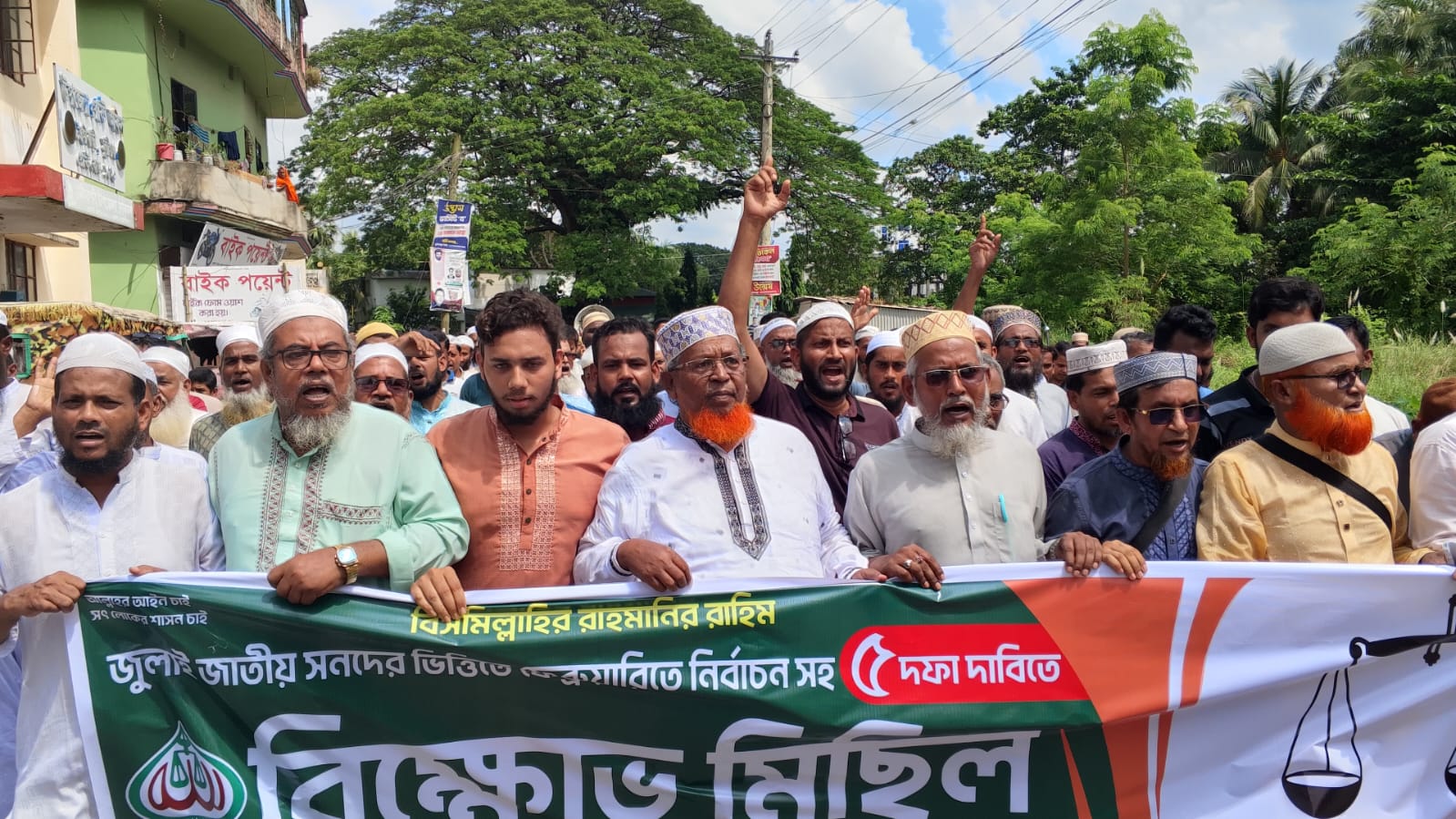 টঙ্গীবাড়ী প্রতিনিধি: জুলাই জাতীয় সনদের ভিত্তিতে এবং পিআর পদ্ধতিতে জাতীয় সংসদ নির্বাচনসহ পাঁচ দফা দাবিতে মুন্সীগঞ্জের টঙ্গীবাড়ীতে বিক্ষোভ মিছিল করেছে বাংলাদেশ জামায়াত ইসলাম।শুক্রবার (২৬ সেপ্টেম্বর) বেলা ১১ টায় উপজেলা মডেল মসজিদ থেকে মিছিল টি শুরু হয়ে উপজেলার প্রধান প্রধান সড়ক প্রদক্ষিণ করে মুক্তিযোদ্ধা কমপ্লেক্সে গিয়ে শেষ হয়। কেন্দ্রীয় কর্মসূচির অংশ হিসেবে বিক্ষোভ মিছিল বের করে দলটি।