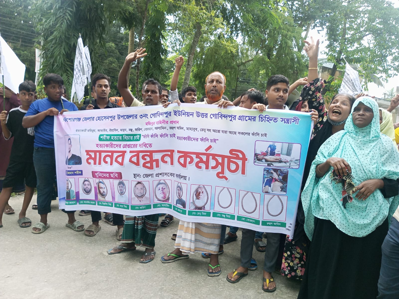 কিশোরগঞ্জ জেলা প্রতিনিধি:    কিশোরগঞ্জের হোসেনপুরে সংঘটিত এক হত্যাকাণ্ডের ঘটনায় ন্যায়বিচার ও আসামিদের দ্রুত গ্রেফতারের দাবিতে জেলা প্রশাসক (ডিসি) ও পুলিশ সুপার (এসপি) বরাবর স্মারকলিপি প্রদান করেছেন নিহতের পরিবার ও স্থানীয়রা। সোমবার (৬ অক্টোবর) সকালে এ স্মারকলিপি জমা দেওয়া হয়।গত ৮ সেপ্টেম্বর উপজেলার গোবিন্দপুর ইউনিয়নের উত্তর গোবিন্দপুর গ্রামে মিজানুর রহমান শরীফ (২৯) নামে এক যুবক খুন হন। ঘটনায় আরও দুইজন আহত হয়ে বর্তমানে ময়মনসিংহ মেডিকেল কলেজ হাসপাতালে চিকিৎসাধীন রয়েছেন।