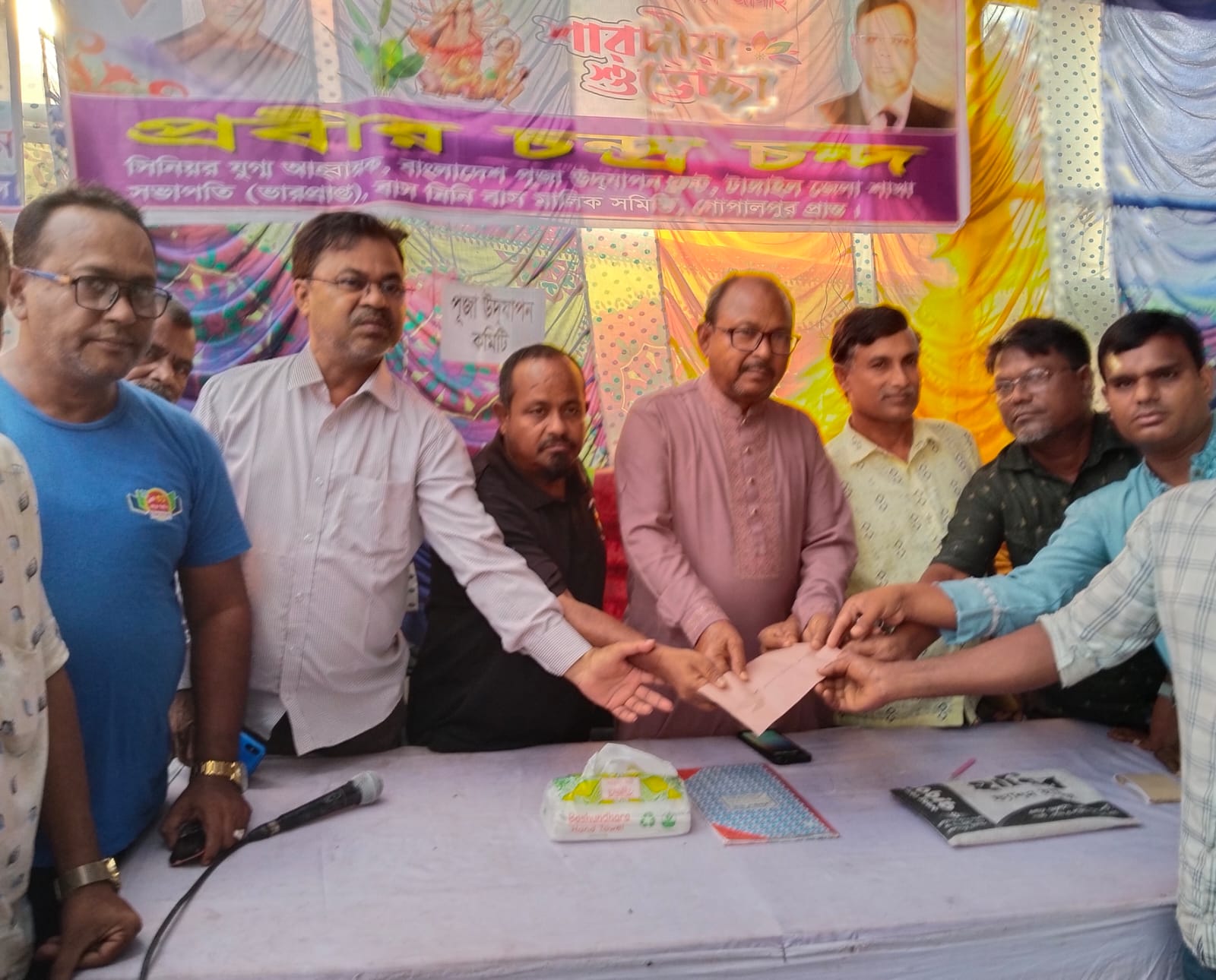 উপজেলা বিএনপির সভাপতি সাবেক পৌর মেয়র খন্দকার জাহাঙ্গীর আলম রবেল মজলুম জননেতা এডভোকেট আব্দুস সালাম পিন্টুর শুভেচ্ছা বার্তা পৌছে দেন এবং পুজারীদের খোজ খবর নেন।আগামী জাতীয় সংসদ নির্বাচনে ধানের শীষের পক্ষে ও মজলুম জননেতা এডভোকেট আব্দুস সালাম পিন্টুকে ভোট দেওয়ার আহবান জানান।