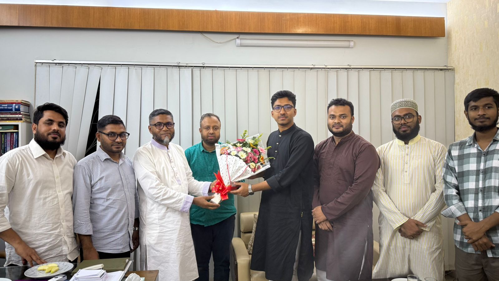 কিশোরগঞ্জ জেলা প্রতিনিধি: চট্টগ্রাম বিশ্ববিদ্যালয় কেন্দ্রীয় ছাত্র সংসদ (চাকসু)-এর সাধারণ সম্পাদক (জিএস) নির্বাচিত হওয়ায় কিশোরগঞ্জের গর্ব, তরুণ নেতা সাঈদ বিন হাবিবকে ফুলেল শুভেচ্ছা জানিয়েছে কিশোরগঞ্জ ছাত্রফোরাম ঢাকা।শুভেচ্ছা জানাতে আয়োজিত অনুষ্ঠানে উপস্থিত ছিলেন ইসলামী ছাত্রশিবিরের সাবেক কেন্দ্রীয় সভাপতি জাহিদুর রহমান, কিশোরগঞ্জ ফোরাম ঢাকার সেক্রেটারি আব্দুল কাদের জুয়েল, যুগ্ম সাধারণ সম্পাদক ড. মাসুদুর রহমান, সাবেক জেলা সভাপতি শাহরিয়ার মাহমুদ শাকিল, ফোরামের আহ্বায়ক আব্দুল্লাহ আল মবিন এবং সদস্য সচিব আশিকুর রহমান সাকিব।