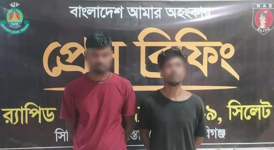 ‎পরবর্তীতে আটক ব্যক্তিদের কাছ থেকে খাকি ও নীল রঙের স্কচটেপে মোড়ানো ১১টি প্যাকেটে মোট ৫৩ কেজি গাঁজা উদ্ধার করা হয়।আটক ব্যক্তিরা হলেন- মৌলভীবাজার জেলার কমলগঞ্জ উপজেলার মৃত্তিক চা বাগানের মৃত রবি উরাংয়ের ছেলে জনক উরাং (৩২) এবং হবিগঞ্জ জেলার চুনারুঘাট উপজেলার রামগঙ্গা চা বাগানের মৃত কমল ভৌমিকের ছেলে দুলাল ভৌমিক (৩৫)।র‍্যাব জানায়, প্রাথমিক জিজ্ঞাসাবাদে তারা গাঁজা সংগ্রহ ও বিক্রির সঙ্গে জড়িত থাকার কথা স্বীকার করেছেন। তারা দীর্ঘদিন ধরে হবিগঞ্জ জেলার সীমান্তবর্তী এলাকা থেকে মাদক সংগ্রহ করে বিভিন্ন স্থানে সরবরাহ করতেন।‎আটক দুজনের বিরুদ্ধে মাদকদ্রব্য নিয়ন্ত্রণ আইন, ২০১৮ অনুযায়ী মামলা দায়েরের পর উদ্ধারকৃত গাঁজাসহ তাদের মাধবপুর থানায় হস্তান্তর করা হয়েছে।‎র‍্যাব-৯ জানায়, মাদকবিরোধী কার্যক্রম অব্যাহত রয়েছে এবং মাদক ব্যবসায় জড়িতদের বিরুদ্ধে কঠোর আইনানুগ ব্যবস্থা নেওয়া হবে।