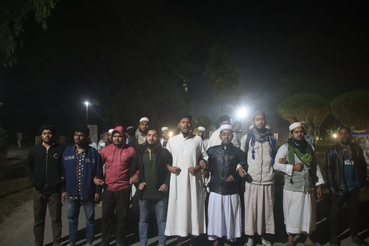 বিক্ষোভ মিছিলে নেতাকর্মীরা ‘রশি লাগলে রশি নে, আওয়ামীলীগের ফাঁসি দে’, ‘দিল্লি না ঢাকা, ঢাকা ঢাকা’৷ ‘মুক্তির মূল মন্ত্র, ইসলামী শাসনতন্ত্র’, ‘মুজিববাদের ঠিকানা, এই বাংলায় হবে না’, ‘সারা বাংলায় খবর দে, আওয়ামী লীগের কবর দে’, ‘একটা একটা লীগ ধর, ধইরা ধইরা সাইজ কর’সহ বিভিন্ন স্লোগান দেয়। মিছিলে সংগঠনটির শাখা সভাপতি ইসমাইল হোসেন রাহাতসহ অর্ধশতাধিক নেতাকর্মীরা উপস্থিত ছিলেন।