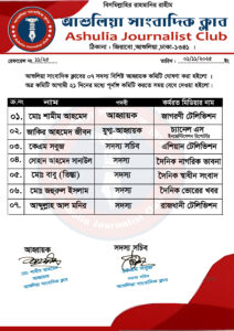 আশুলিয়া প্রতিনিধি: ঢাকার আশুলিয়ায় নবগঠিত “আশুলিয়া সাংবাদিক ক্লাব”-এর সাত সদস্যের আহ্বায়ক কমিটি গঠন করা হয়েছে। শনিবার (২ নভেম্বর) স্থানীয় এক রেস্টুরেন্টে সাংবাদিকদের এক সভায় সর্বসম্মতিক্রমে এই কমিটি গঠন করা হয়।সভায় সভাপতিত্ব করেন সিনিয়র সাংবাদিকবৃন্দ।