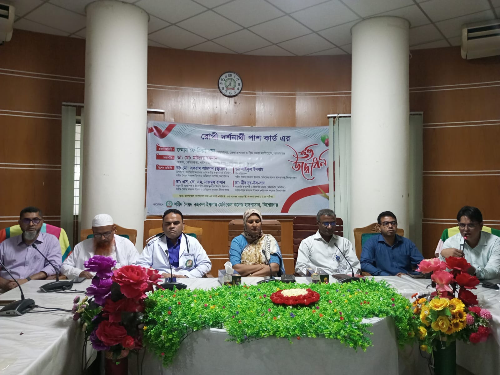 ঙবক্তারা বলেন, রোগী দর্শনার্থী পাশ কার্ড চালুর মাধ্যমে হাসপাতালের নিরাপত্তা, শৃঙ্খলা ও রোগীসেবা আরও উন্নত হবে। দর্শনার্থীদের প্রবেশ-নিয়ন্ত্রণ সহজ হবে এবং হাসপাতালের সার্বিক পরিবেশ পরিচ্ছন্ন ও রোগীবান্ধব থাকবে। সাইফুল মালেক বলেন, এই হাসপাতালের ভিতরে কোনো সিমের নেটওয়ার্ক পাওয়া যায় না, এতে রোগিদের অনেক ভোগান্তি হতে হয়,অনুষ্ঠানে শহীদ সৈয়দ নজরুল ইসলাম মেডিকেল কলেজ হাসপাতালের চিকিৎসক, কর্মকর্তা-কর্মচারী, বিভিন্ন সামাজিক সংগঠনের প্রতিনিধি এবং প্রিন্ট ও ইলেকট্রনিক মিডিয়ার সাংবাদিকরা উপস্থিত ছিলেন।