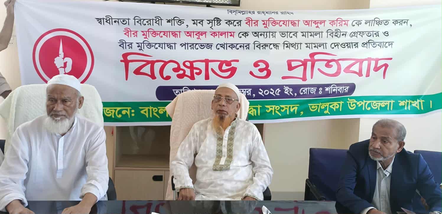 ময়মনসিংহ প্রতিনিধি: ময়মনসিংহের ভালুকায় বীর মুক্তিযোদ্ধা আব্দুল করিম কে প্রকাশ্যে লাঞ্ছিত করা, মুক্তিযোদ্ধা আবুল কালামকে অন্যায় ভাবে মামলা বিহীন গ্রেফতার ও মুক্তিযোদ্ধা পারভেজ খোকনের বিরুদ্ধে মিথ্যা মামলা দেওয়ার প্রতিবাদে বিক্ষোভ ও প্রতিবাদ সভা অনুষ্ঠিত হয়েছে।উপজেলা মুক্তিযোদ্ধা সংসদের আয়োজনে শনিবার (৮ নভেম্বর) বিকেলে উপজেলা মুক্তিযোদ্ধা সংসদ কার্যালয়ে এই সভা অনুষ্ঠিত হয়।সভায় উপজেলা মুক্তিযোদ্ধা সংসদ কমান্ডের আহবায়ক বীর মুক্তিযোদ্ধা মোঃ জামাল হোসেনের সভাপতিত্বে ও যুগ্ম আহবায়ক জামাল উদ্দিনের সঞ্চালনায় প্রধান অতিথি হিসেবে উপস্থিত ছিলেন মুক্তিযোদ্ধা সংসদ ময়মনসিংহ জেলা কমান্ডের আহবায়ক বীর মুক্তিযোদ্ধা নাজমুল ইসলাম বেগ।
