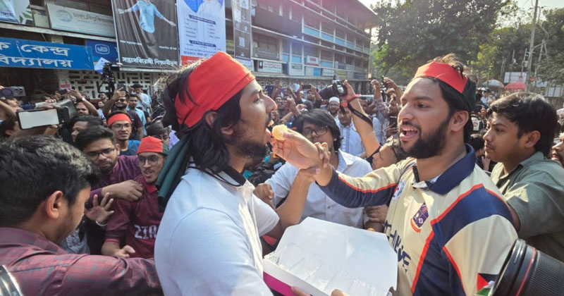শেখ হাসিনার মৃত্যুদণ্ডের রায়ে টিএসসিতে মিষ্টি বিতরণ