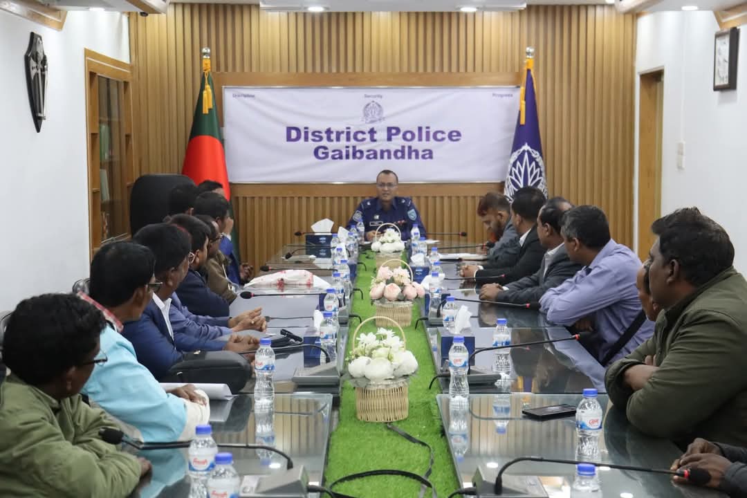 সভায় অতিরিক্ত পুলিশ সুপার গাইবান্ধ জেলায় নিছিদ্র নিরাপত্তা ব্যবস্থার মাধ্যমে ‘বড়দিন-২০২৫’ উদযাপন সম্পন্ন করার লক্ষ্যে গাইবান্ধ জেলা পুলিশ কর্তৃক গৃহীত নিরাপত্তা পরিকল্পনা সম্পর্কে উপস্থিত সকলকে অবহিত করেন। তিনি, উৎসবকে ঘিরে গির্জাগুলোতে স্বেচ্ছাসেবক নিয়োগের আহবান-সহ বড়দিন উদযাপন কমিটির ‘করণীয় ও বর্জনীয়’ সংক্রান্ত বিভিন্ন বিষয়ে দিকনির্দেশনাও প্রদান করেন।