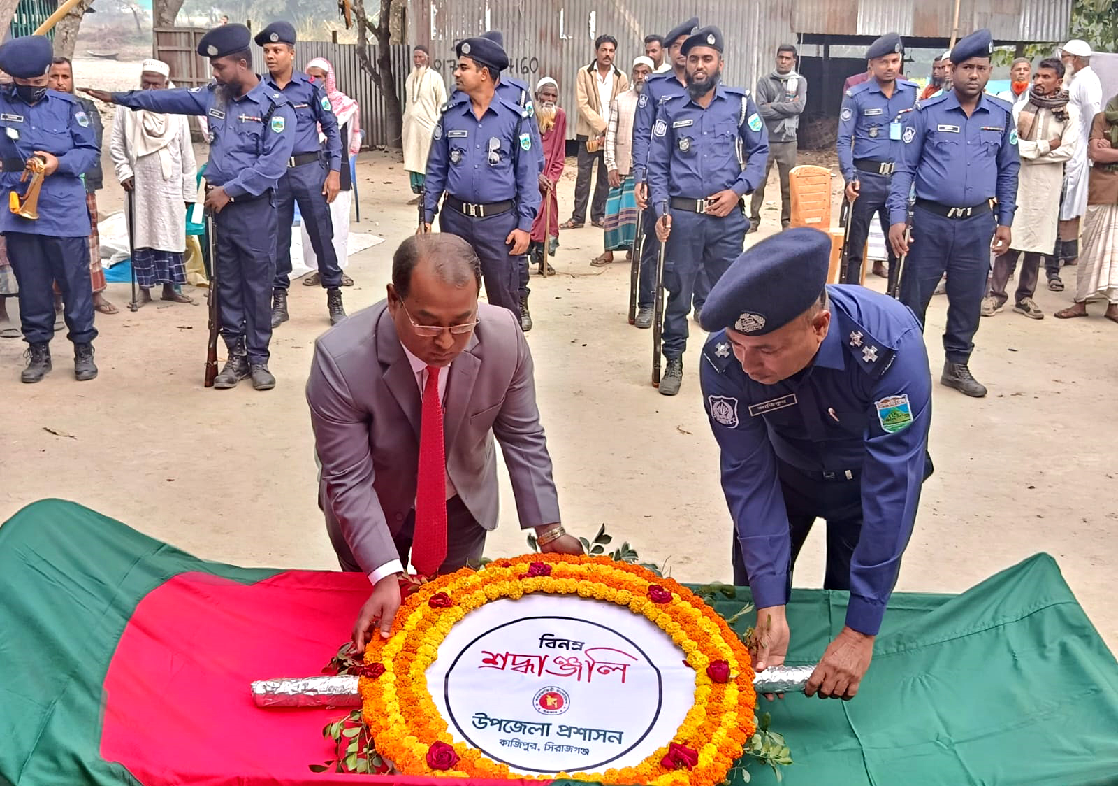 কাজিপুর উপজেলা প্রতিনিধি: সিরাজগঞ্জের কাজিপুর উপজেলার নিশ্চিন্তপুর ইউনিয়নের চরদোরতা গ্রামের বীর মুক্তিযোদ্ধা খলিলুর রহমান চাকলাদার বুধবার দুপুর ১১টায় নিজ বাড়িতে ইন্তেকাল করেছেন।ইন্না লিল্লাহি ওয়া ইন্না ইলাইহি রাজিউন।তার প্রতি রাষ্ট্রীয় মর্যাদায় গার্ড অব অনার প্রদান করেন উপজেলা নির্বাহী অফিসার মো. মোস্তাফিজুর রহমান।