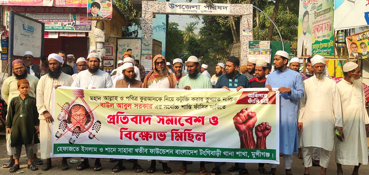 টঙ্গীবাড়িতে বাউল শিল্পী আবুল সরকারের ফাঁসির দাবিতে বিক্ষোভ