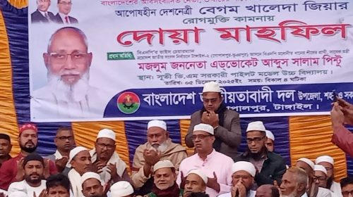 নিজস্ব প্রতিনিধি: বিএনপির সিনিয়র যুগ্ম মহাসচিব এডভোকেট রুহুল কবির রিজভী শুক্রবার (৫ ডিসেম্বর) সকালে কুড়িগ্রামের সর্দার পাড়ার তালিমে জান্নাত হুফ্ফাজুল কোরান ক্যাডেট মাদ্রাসার ছাত্র ছাত্রীরা কোরান পাঠ ও মোনাজাত করেন। সাদাকায়ে জারিয়া উপলক্ষে ছাগল জবাই করা হয়।বহু ষড়যন্ত্র খালেদা জিয়াকে দেশ থেকে সরিয়ে দেওয়ার চেষ্টা করেছিলো; কিন্তু দৃঢ় মনোবল ও সাহস নিয়ে সব সময় মানুষের পাশে ছিলেন বলে মন্তব্য করছেন বিএনপির সিনিয়র যুগ্ম মহাসচিব এ্যাড. রুহুল কবির রিজভী।