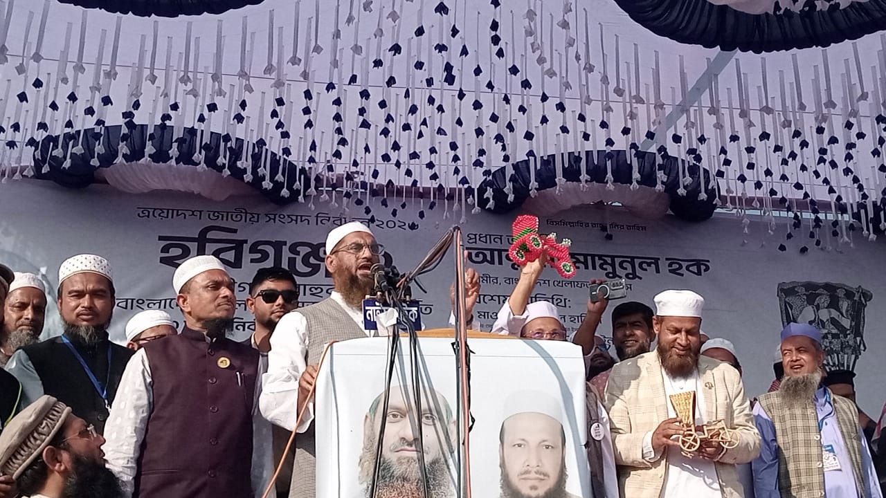 স্বপন রবি দাশ (হবিগঞ্জ) প্রতিনিধি: হবিগঞ্জের নবীগঞ্জে অনুষ্ঠিত বাংলাদেশ খেলাফত মজলিসের মহাসমাবেশে দলটির আমির মাওলানা মামুনুল হক বলেছেন, ১১ দলীয় জোট ক্ষমতায় যাওয়ার জন্য বা কাউকে ক্ষমতায় বসানোর উদ্দেশ্যে নয়, বরং দেশের জনগণকে তাদের প্রকৃত অধিকার ফিরিয়ে দিতে ঐক্যবদ্ধ হয়েছে।মঙ্গলবার (২৭ জানুয়ারি) দুপুরে নবীগঞ্জ উপজেলার জে কে হাইস্কুল মাঠে আয়োজিত মহাসমাবেশে প্রধান অতিথির বক্তব্যে তিনি বলেন, “আমাদের লক্ষ্য একটাই লুণ্ঠনমুক্ত, ইনসাফভিত্তিক বাংলাদেশ প্রতিষ্ঠা করা। জনগণের কষ্টার্জিত সম্পদ লুণ্ঠন করে বিদেশে পাচার করা হয়েছে। এখন সময় এসেছে জনগণকে তাদের ন্যায্য অধিকার ফিরিয়ে দেওয়ার।”