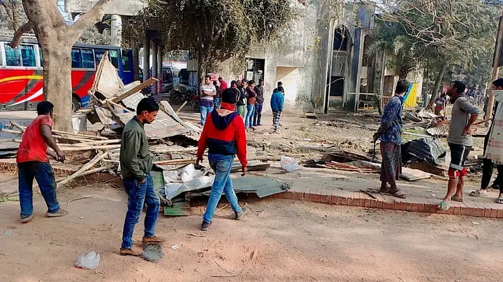 মোঃ দুল্লাপ হোসেন, ঝিনাইদহ (জেলা) প্রতিনিধি: যৌথ অভিযানে ঝিনাইদহ কেন্দ্রীয় বাস টার্মিনালে ব্যাঙের ছাতার মত গড়ে উঠা অবৈধ স্থাপনা উচ্ছেদ করা হয়েছে।বুধবার দুপুরে ভ্রাম্যমাণ আদালতের যৌথ অভিযানে বাস টার্মিনালের সরকারী জায়গা দখল করে গড়ে উঠা বিভিন্ন দোকান ও বাস কাউন্টারসহ টিনশেড ঘেরা স্থাপনা উচ্ছেদ করা হয়।এসময় ছোট বড় প্রায় ২০ টি স্থাপনা উচ্ছেদ করা হয়েছে বলে ভ্রাম্যমাণ আদালত সুত্রে জানা গেছে।ভ্রাম্যমাণ আদালত পরিচালনা করেন, অতিরিক্ত জেলা প্রশাসক (রাজস্ব) এবিএম খালিদ হোসেন সিদ্দিকী।