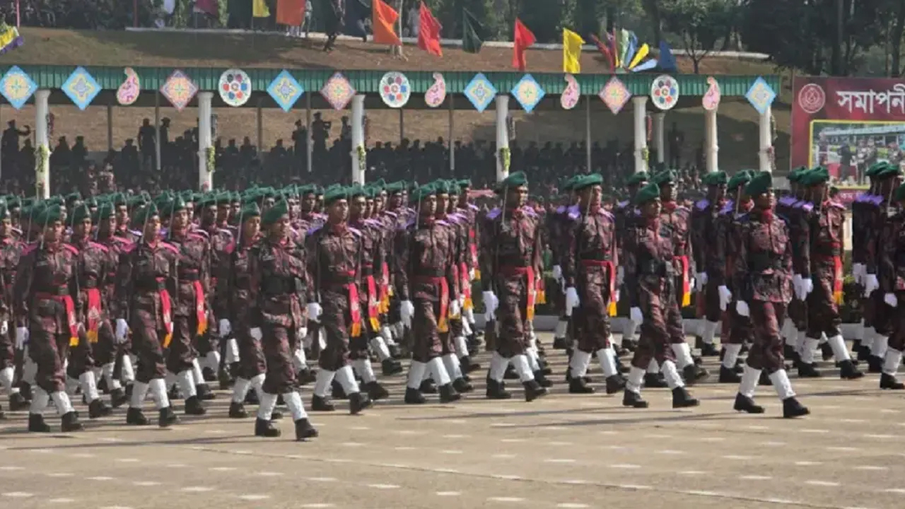 বুধবার (১৪ জানুয়ারি) সকালে চট্টগ্রামের সাতকানিয়ায় অবস্থিত বিজিবির ঐতিহ্যবাহী প্রশিক্ষণ প্রতিষ্ঠান ‘বর্ডার গার্ড ট্রেনিং সেন্টার অ্যান্ড কলেজ (বিজিটিসিএন্ডসি)’-এর ‘বীর উত্তম মজিবুর রহমান প্যারেড গ্রাউন্ডে’ এই বর্ণাঢ্য কুচকাওয়াজ অনুষ্ঠিত হয়। নির্ধারিত সময় অনুযায়ী অনুষ্ঠান শুরু হলে প্যারেড গ্রাউন্ডে শৃঙ্খলা, পেশাদারিত্ব ও সামরিক দক্ষতার অনন্য প্রদর্শনী দেখা যায়।