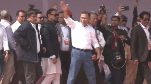খুলনার জনসভা মঞ্চে তারেক রহমান