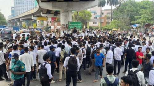 ঢাকার সাতরাস্তা এলাকায় পলিটেকনিক শিক্ষার্থীদের সড়ক অবরোধ