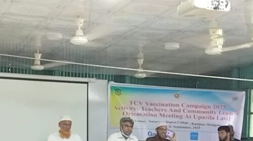 কাজিপুরে টাইফয়েড ভ্যাকসিনেশন ক্যাম্পেইন ২০২৫ উপলক্ষে শিক্ষক ওরিয়েন্টেশন সভা