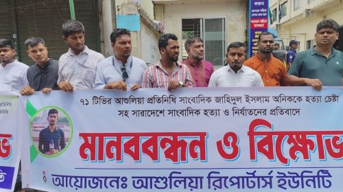 আশুলিয়ায় সাংবাদিকদের উপর হামলা-নির্যাতনের প্রতিবাদে মানববন্ধন ও বিক্ষোভ কর্মসূচি পালন