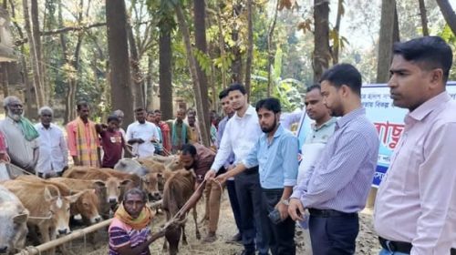 বেড়ায় দূঃস্থ জেলেদের মাঝে বকনা বাছুর বিতরণ