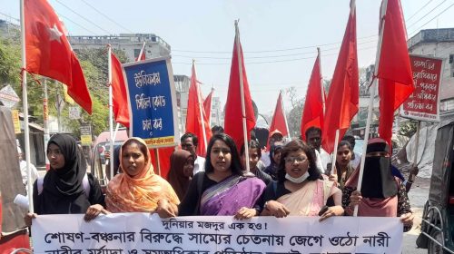আন্তর্জাতিক নারী দিবসে ঝিনাইদহে সমাজতান্ত্রিক মহিলা ফোরামের বিক্ষোভ সমাবেশ।