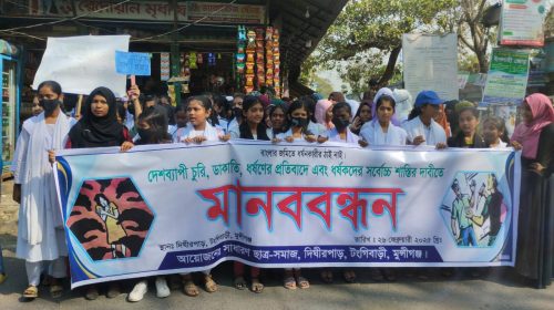 অপরাধীদের সর্বোচ্চ শাস্তির দাবীতে টঙ্গীবাড়ী মানববন্ধন ও বিক্ষোভ মিছিল