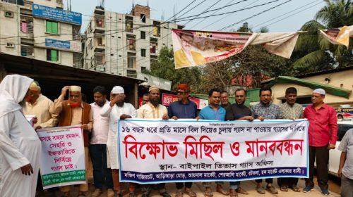 আশুলিয়ায় গ্যাসের দাবিতে বিক্ষোভ মিছিল ও মানববন্ধন করেছেন গ্রাহকরা