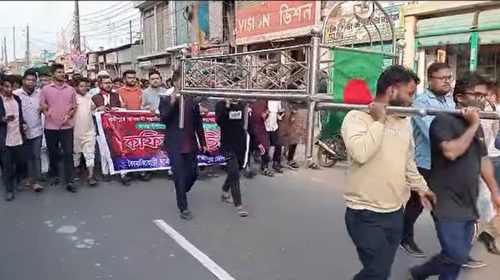 আওয়ামীলীগ নিষিদ্ধের দাবীতে ছাত্র-জনতার কফিন কাঁধে মিছিল