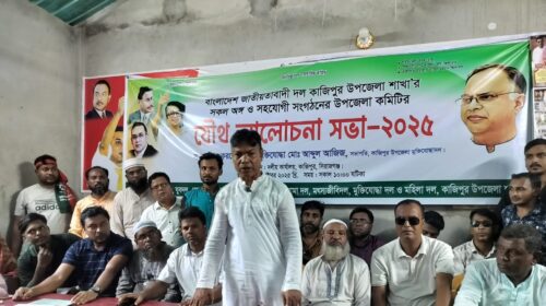 কাজিপুর উপজেলা প্রতিনিধি: বাংলাদেশ জাতীয়তাবাদী দল (বিএনপি) সিরাজগঞ্জ জেলার কাজিপুর উপজেলা শাখার উদ্যোগে অঙ্গ ও সহযোগী সংগঠনের অংশগ্রহণে এক প্রাণবন্ত যৌথ আলোচনা সভা–২০২৫ অনুষ্ঠিত হয়েছে।শুক্রবার (১০ অক্টোবর ২০২৫) সকালে কাজিপুর…